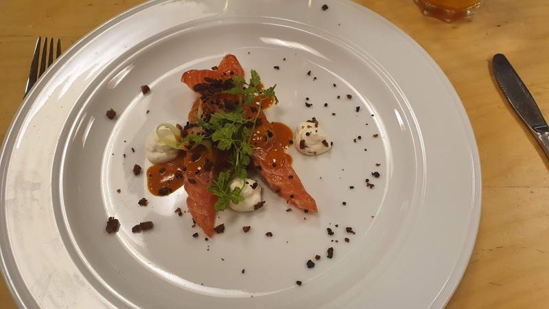 Rimmet Laks med Gin, Rygeostcreme & Havtorn