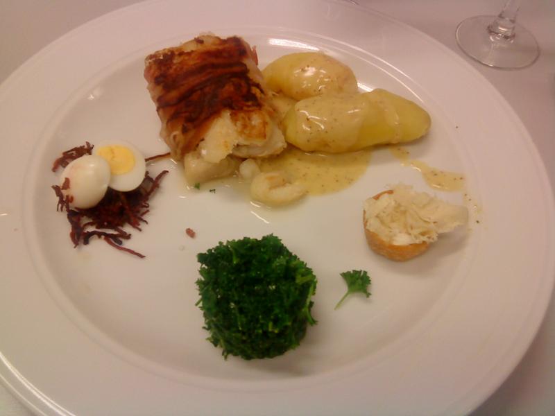 Skær pancetta i tynde skiver, ca. 1 mm tyk, som bacon. Pak torsken ind i pancetta´en, 2 skiver om hvert stykke. Luk evt. med en tandstik.